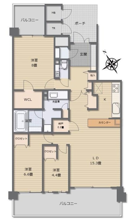 ■専有面積95.62㎡、広々3LDK