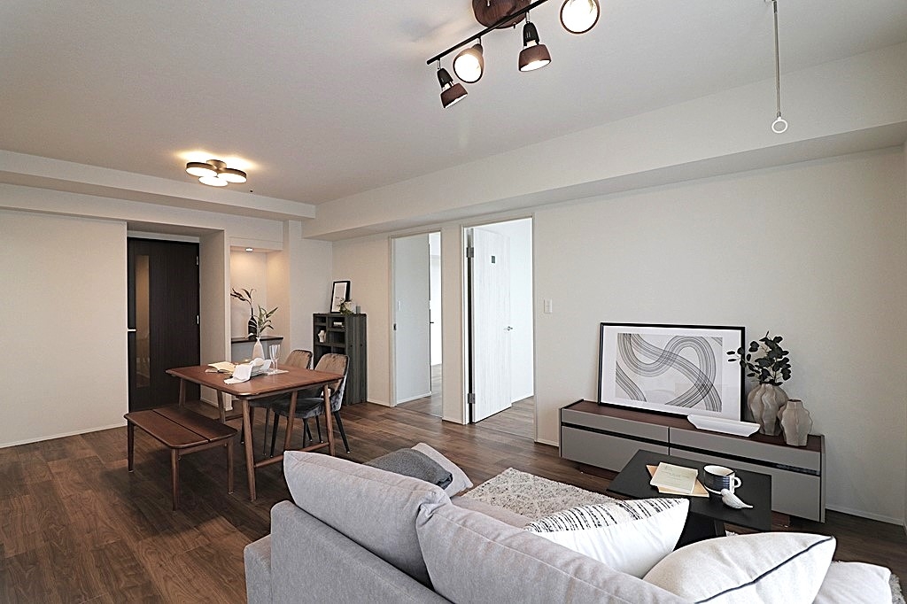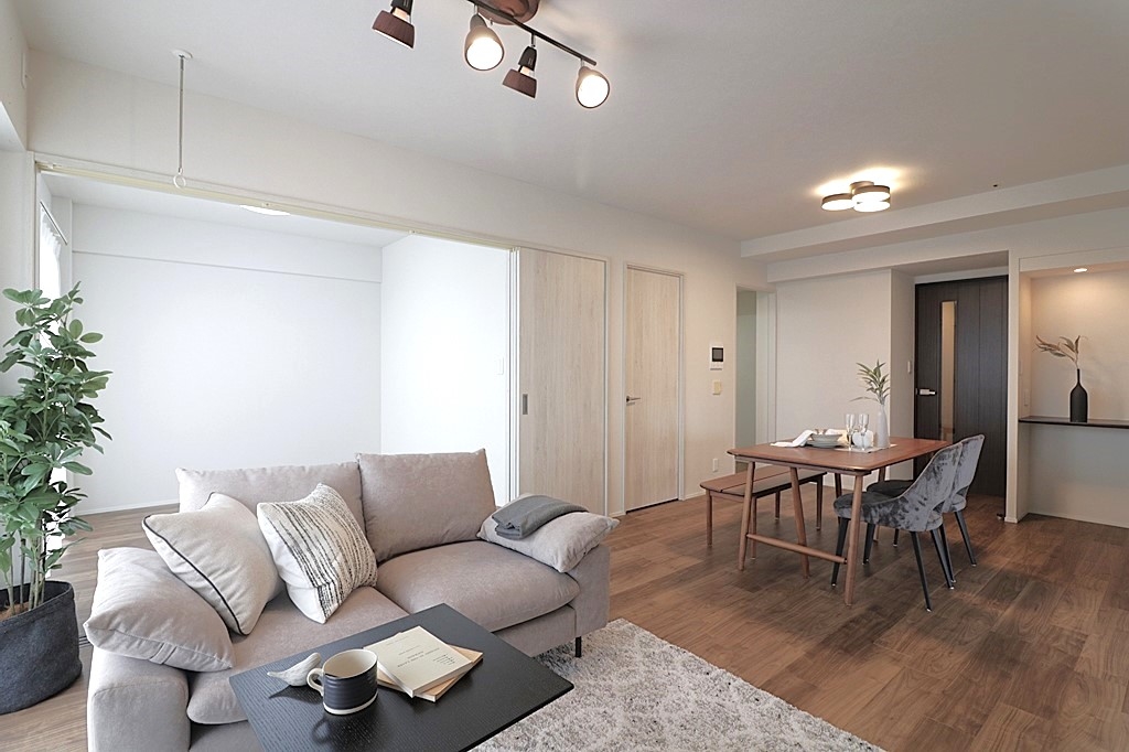 全室クロス張替、フロアタイル上張(LDK、洋室、廊下)、建具一部新調、ハウスクリーニング