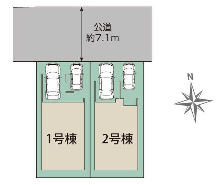 - (1号棟)4LDK、(2号棟)4LDK